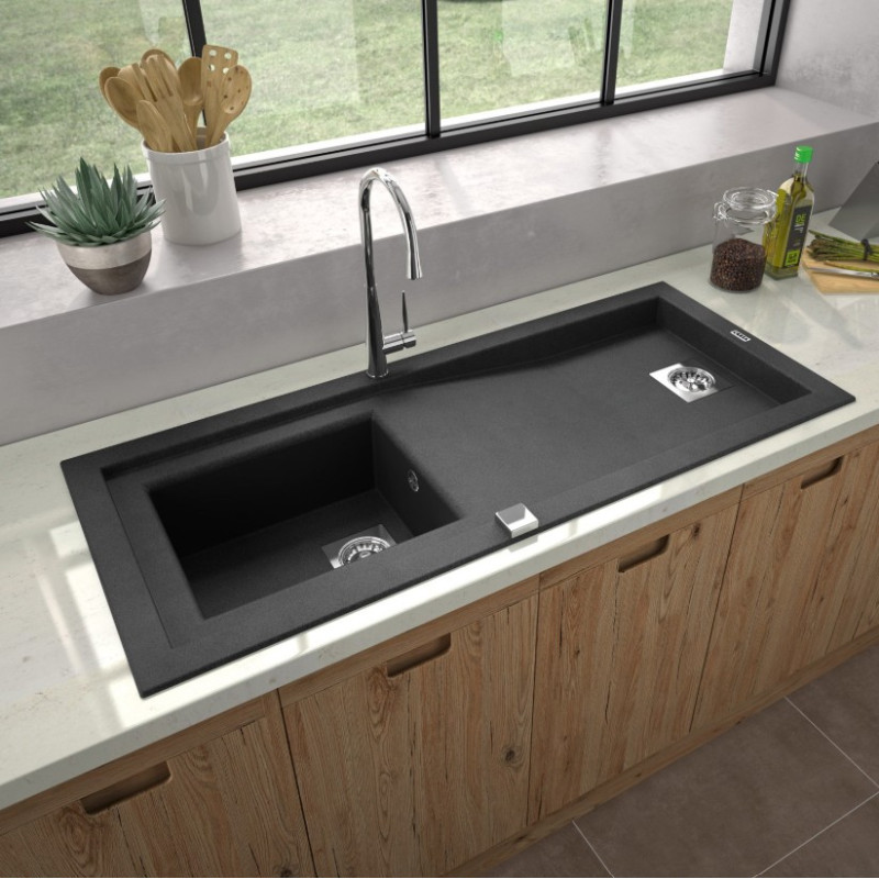 - Durchpigmentiert mit einer Stärke von 5 mm: Die Spülen von CAREA® sind durchpigmentiert und behalten ihr ursprüngliches Aussehen lange bei. Ihre Vorteile sind Widerstandsfähigkeit und Leichtigkeit. Ihre Dicke ermöglicht eine gute Schalldämpfung und thermische Isolation (beim Abstellen von Geschirr oder Schüsseln in der Spüle entsteht kein ohrenbetäubender Lärm und das Wasser bleibt beim Abwasch in der Spüle lange warm).