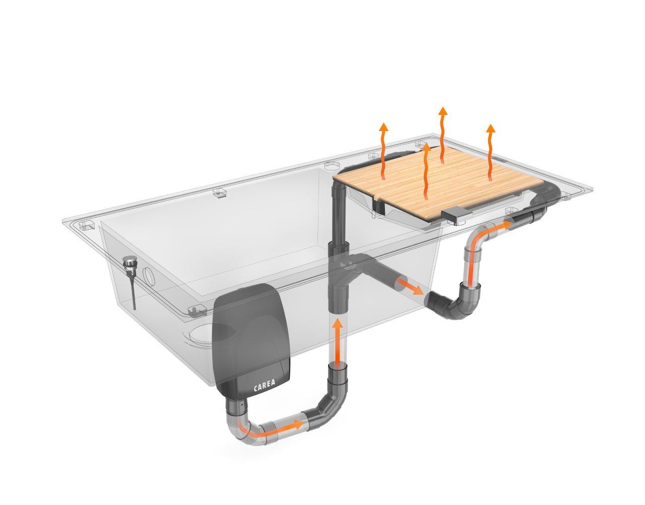 Spüle mit Gebläse: in der Arbeitsplatte integriertes Warmluft-Trocknungsgebläse